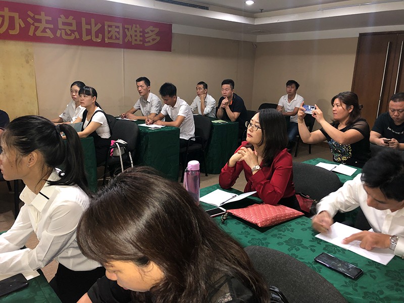 在整個培訓過程中,北斗星導師分享了活動策劃、渠道推廣到老客戶維護轉介紹等等內容,為前來學習的經銷商家人們提供了滿滿的銷售干貨。現場培訓學習氣氛熱烈,每一位學員都以空杯心態不斷汲取知識,認真的在聽講,時不時的發表自己的疑惑。導師們并針對問題一一解答,細致耐心。