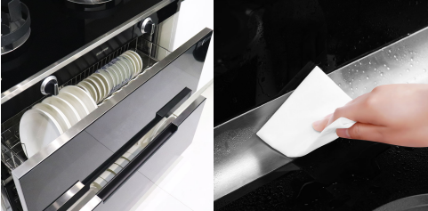 餐后清潔也很輕松,集成灶臺面通體是由一整塊鋼板制作而成的,無縫臺面一擦即凈,輕松快捷。收拾完廚房,還能對餐具進行全方位消毒,日常用餐更為衛生健康。