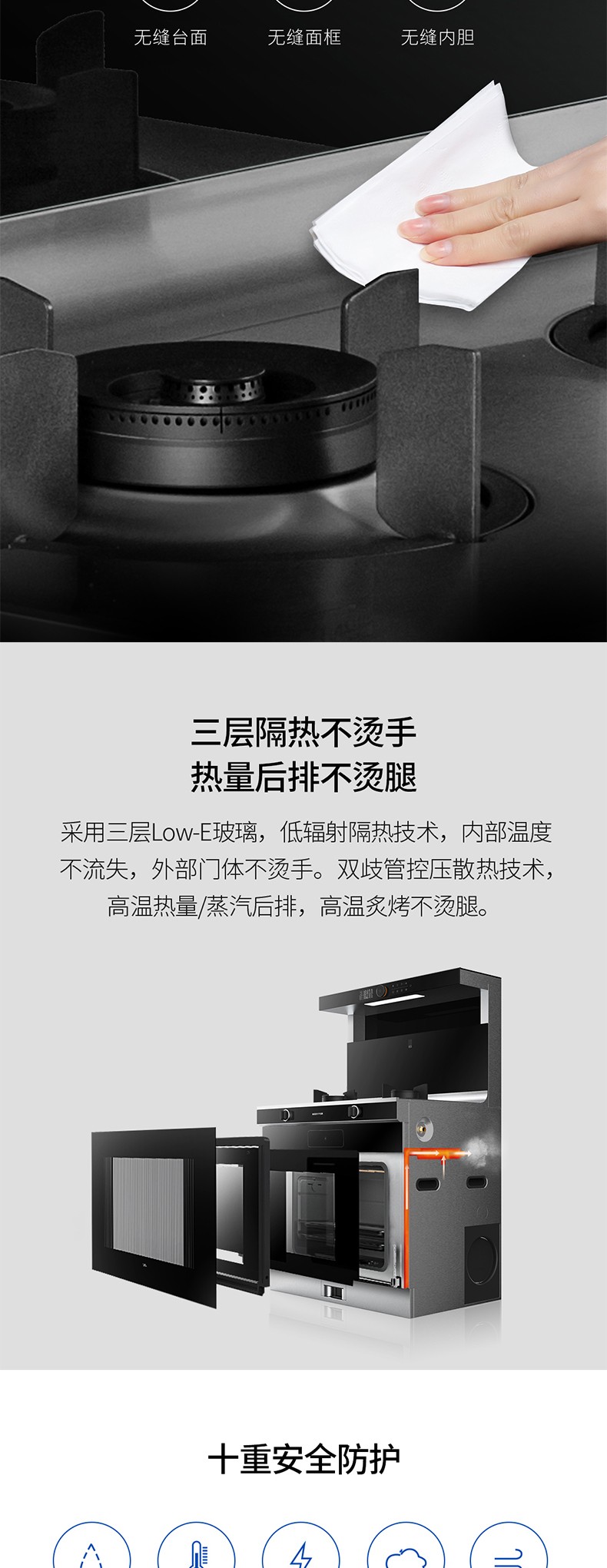 無縫一體臺面,油污一抹即凈